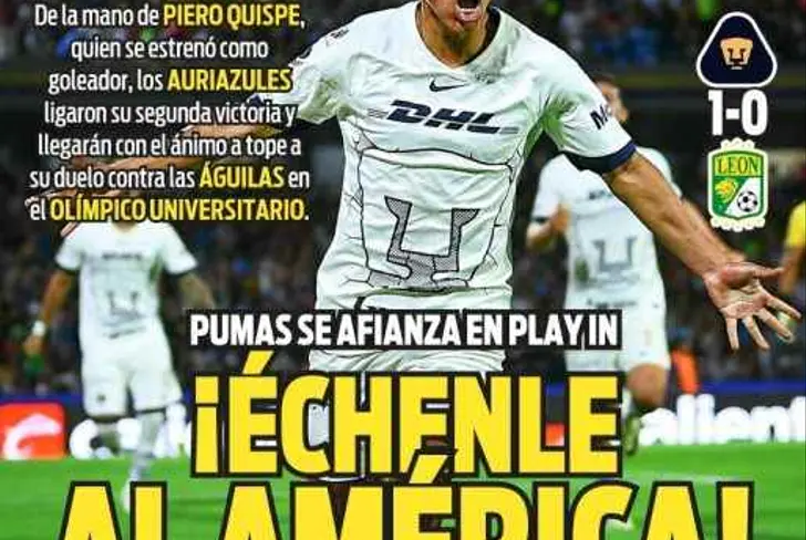 “¡Échenle al América! De la mano de Piero Quispe, quien se estrenó como goleador, los auriazules ligaron su segunda victoria y llegarán con el ánimo a tope a su duelo contra las 'águilas' en el Olímpico Universitario”, publicó el diario 'Récord' en su portada.
