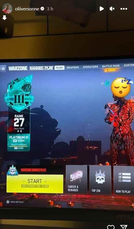 En esa línea, hace unas horas, el integrante de la Selección Peruana subió a sus historias de Instagram una foto donde se le ve haciendo unos de sus pasatiempos favoritos, jugar Call Of Duty Warzone, cosa que emociona mucho a Reynoso, pues no desperdicia su tiempo en eventos extradeportivos, como Bryan Reyna.
