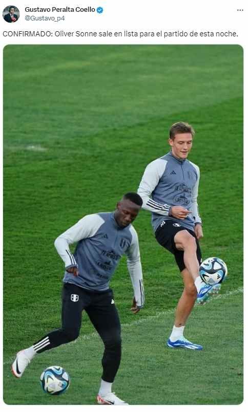 En un inicio el DT de la Bicolor que sostuvo que convocar a Sonne era una opción, pero no confirmó en ningún momento su llamado. "Oliver es una opción. Vamos a ver cómo se desenvuelve este fin de semana. Ya cumplió el tema de papeles, que era lo que se estaba complicando y hoy tiene un buen presente en su club y es lo que nosotros siempre pedimos con los jugadores; un buen presente", reveló el entrenador en una primera conferencia de prensa.