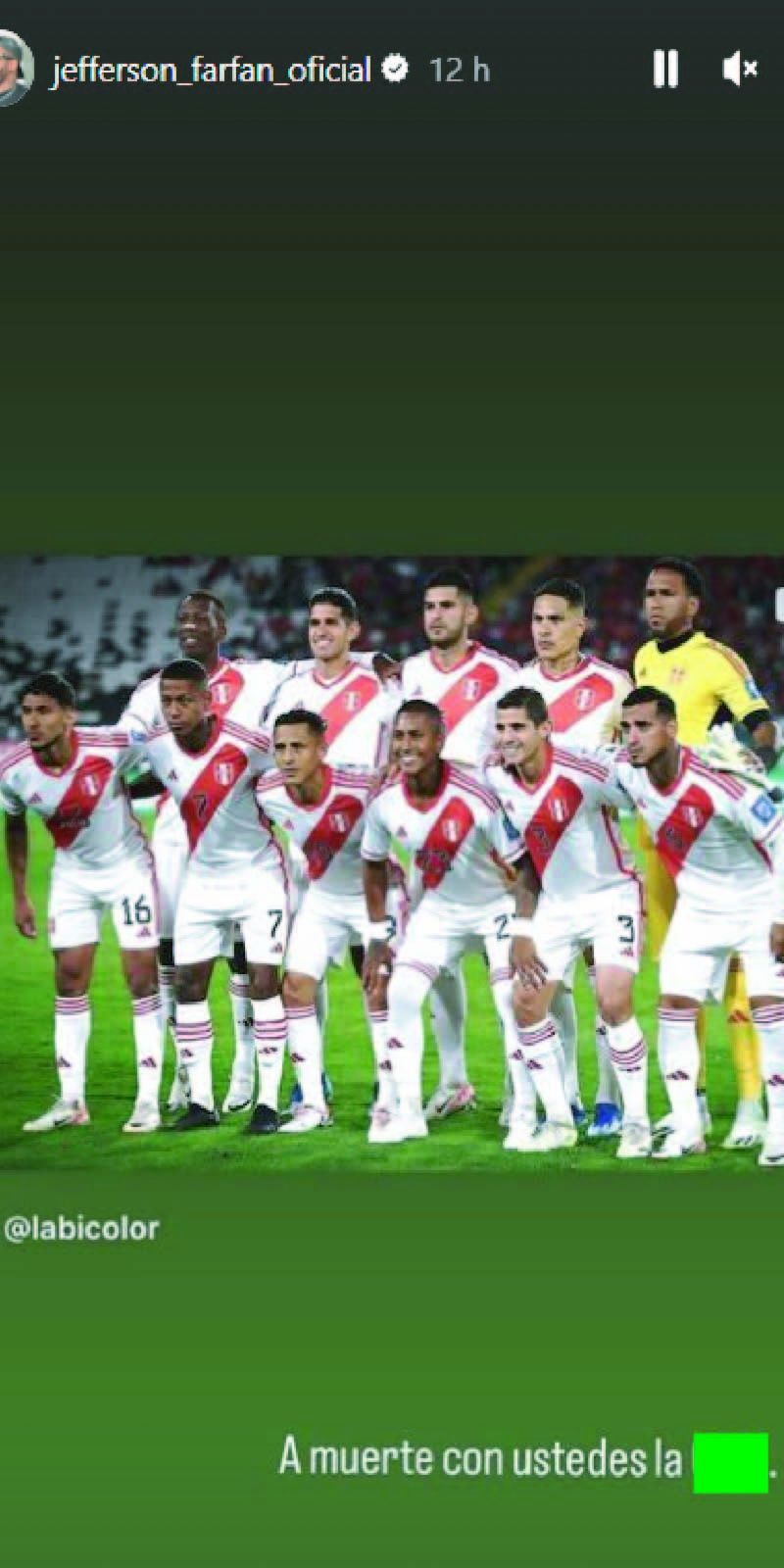 Sin embargo, su mensaje disgustó a la hinchada de la selección, pues publicó una historia en Instagram donde decía “A muerte con ustedes” con una foto del conjunto peruano. Y es que la mayoría de los hinchas de la Bicolor quieren que varios de los representantes de ese equipo salgan del cuadro por su bajo rendimiento ante la selección chilena.