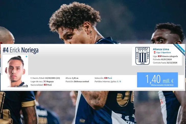 Una noticia que ha sorprendido a propios y extraños sacudió este miércoles al fútbol peruano. Erick Noriega, joven defensor de Alianza Lima, ha despertado el interés de uno de los clubes más grandes de Sudamérica: River Plate. Según el reconocido portal especializado Transfermarkt, el central blanquiazul tiene un 56% de probabilidades de concretar su fichaje por el conjunto millonario, lo que ha generado gran expectativa entre los hinchas.
