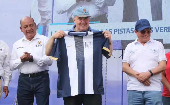Representantes de Alianza Lima hicieron entrega de la camiseta oficial a López Aliaga como parte del evento, en el cual se anunciaron nuevas obras para el distrito de La Victoria, sede del club blanquiazul. El asesor legal de Alianza Lima, Robert Del Castillo, fue el encargado de entregar la camiseta y un banderín del club, un gesto que el alcalde recibió con agrado y exhibió ante los asistentes.