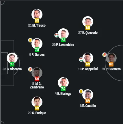 Hablamos de Eryc Castillo, el extremo ecuatoriano que, contra Cienciano, brilló por su intrascendencia. De acuerdo a Sofascore, Castillo apenas alcanzó una calificación de 6,4 puntos, superando apenas a los expulsados Carlos Zambrano (5,9) y Paolo Guerrero (6,2).
