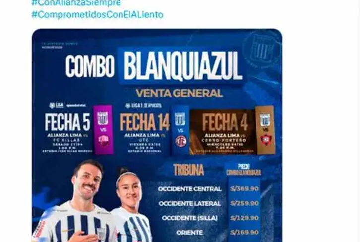 Tras la derrota del conjunto merengue, Alianza Lima aprovechó la oportunidad para realizar una publicación polémica que generó debate entre los seguidores del club crema. "¡Últimos días del combo blanquiazul! Aprovecha la oportunidad de adquirir estos 3 partidos a un precio especial" , publicó la entidad blanquiazul. Apuesta en Betsson a los partidos de las mejores ligas del mundo y recibe un bono de bienvenida de 50 soles.