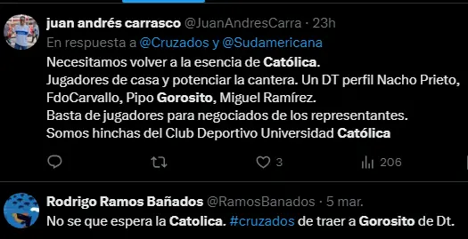 Este resultado ha generado una ola de críticas hacia Tiago Nunes, el técnico brasileño que ya había dirigido a Sporting Cristal. Los aficionados de la UC, a través de redes sociales, han manifestado su descontento y han pedido la llegada de Néstor Gorosito, actual entrenador de Alianza Lima, quien goza de gran popularidad y reconocimiento en Chile.