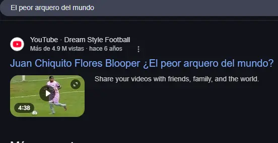Esto se debe a Google que lo tiene marcado así, pues a la hora de bucarlo en las redes sociales con ese apelativo "El peor arquero del mundo", lo primero que sale justamente es Juan Flores.