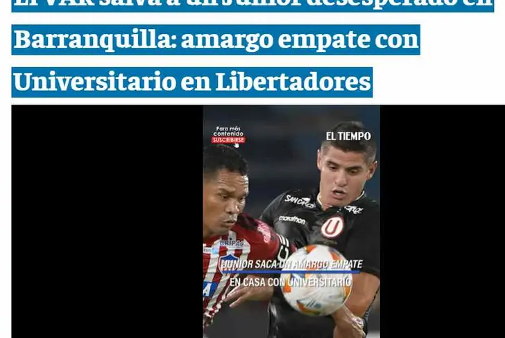 “La oportunidad estaba servida sobre la mesa, si el Junior de Barranquilla ganaba en condición de local contra Universitario de Perú se ponía como único líder del grupo D de la Copa Libertadores, pero el 'tiburón' se ahogó en un vaso de agua y no pudo pasar el empate 1-1 contra un equipo sólido en defensa y peligroso en ataque” , publicó el medio 'El Tiempo de Colombia'.