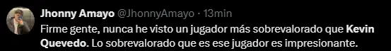 "Firme gente, nunca he visto un jugador más sobrevalorado que Kevin Quevedo. Lo sobrevalorado que es ese jugador es impresionante"
