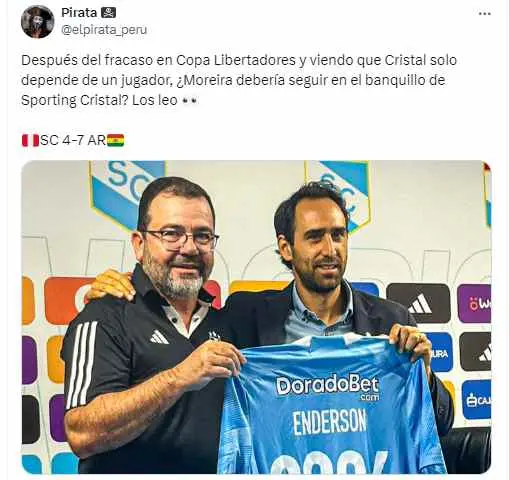 En esta línea, algunos pudieron notar que el trabajo del DT carioca en el club rimense depende de un jugador, Martín Cauteruccio. Por cuarta ocasión, el delantero uruguayo metió un hat-trick en un partido, dando a entender que el bueno momento de SC parte de ‘Caute’. “Después del fracaso en Copa Libertadores y viendo que Cristal solo depende de un jugador, ¿Moreira debería seguir en el banquillo de Sporting Cristal”, dice la página ‘El Pirata’.