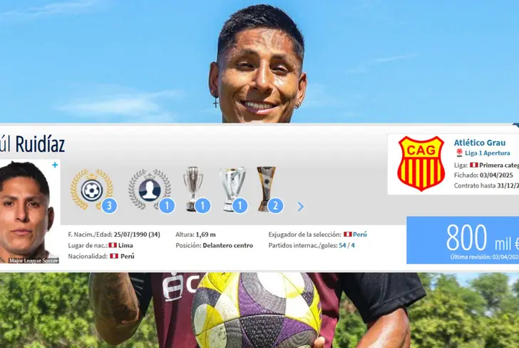 La llegada de Raúl Ruidíaz al Atlético Grau de Piura ha sacudido el mercado del fútbol peruano. Sin embargo, más allá del impacto mediático de su fichaje, la noticia también vino acompañada de una importante actualización en su cotización internacional. Las lesiones que lo aquejaron durante gran parte del 2024 y su reciente traspaso a un equipo del torneo local han provocado un desplome considerable en su valor de mercado.